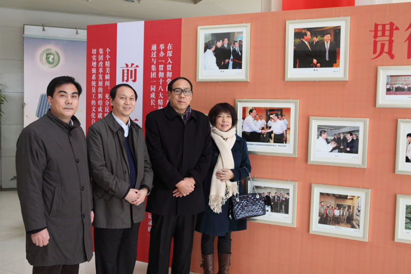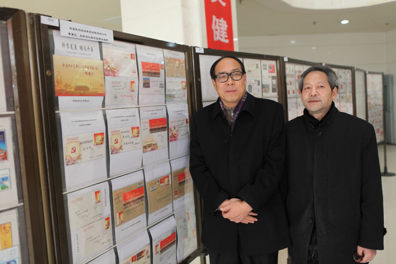 陕药集团工会主席李俊主持集邮摄影展,监事会主席赵秦川(左一)、副总经理祁万江(右一)为摄影展揭幕