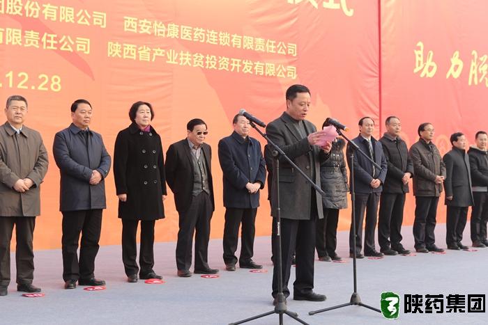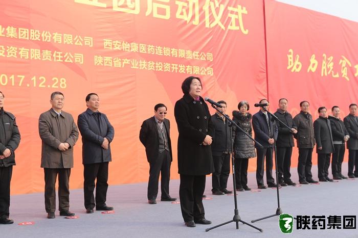 陕药集团党委书记、董事长翟日强致辞,他说西北国际中医药产业园项目,是陕药集团产业整体布局的重要组成部分。该项目按照国家关于中药材保护与发展、中药材现代物流体系建设、中医药发展等方面的战略规划和指导意见,紧抓陕西建设中医药强省的良好机遇,围绕打造“秦药”品牌发展目标,将以分布关中、陕南、陕北的15个药材基地为依托,打造完整的中药材种植加工、仓储物流、贸易服务产业链,带动中药饮片、医药食品塑料软包装等配套产业协调发展,为陕药集团实现中药产业科技化、规模化奠定坚实基础。项目建成后,年综合营业收入有望达到50亿元以上,在为我省经济社会和中药产业发展做出积极贡献的同时,助力我省脱贫攻坚和小康社会建设。也将对我们在陕西这块具有孙思邈中医药文化得天独厚底蕴的热土上,传承中医药文化、发展中医药文化,产生深远影响,发挥重要作用。