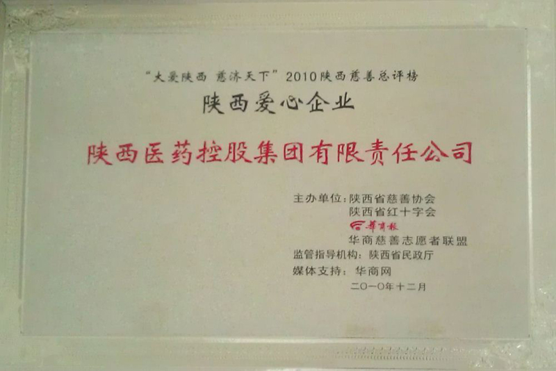 2010年“大爱陕西,慈济天下”2010陕西慈善总评榜爱心企业