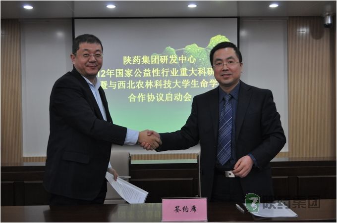 2012年2月29日上午,陕药集团在研发中心5楼会议室召开了“国家公益性行业重大科研专项暨与西北农林科技大学生命学院合作协议”启动会。中国工程院院士张生勇教授、西北农林科技大学副校长侯曦教授、省发改委高新处刘迎军处长、省工信厅科技处周保健副处长、省科技厅社发处张杲副处长、省药监局注册处张璇副处长、西北农林科技大学生命学院常务副院长韦革宏教授、西北农林科技大学生命学院党委书记庄世宏教授、西北农林科技大学雷鸣教授出席了会议。