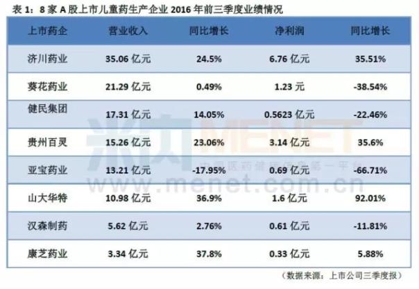 2016年还剩不到两个月就结束了,细看儿童药相关上市药企的前三季成绩,喜忧参半。8家A股上市药企中,济川医药、贵州百灵、山大华特以及康芝药业4家的营业收入与净利润均有正增长。