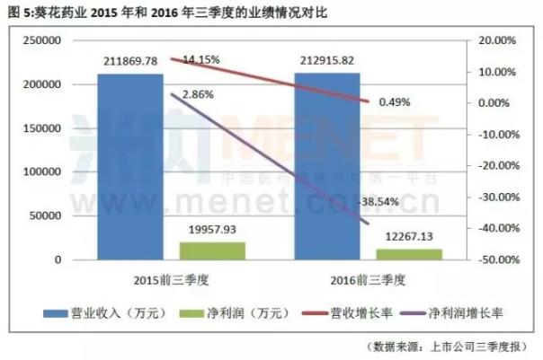 数据显示,今年葵花药业整体的营业收入上涨的速度开始放缓,净利润有下降的趋势,三季度葵花药业的营业收入为21.29亿元,增长率为0.49%,净利润1.23亿元,增长率为-38.54%。