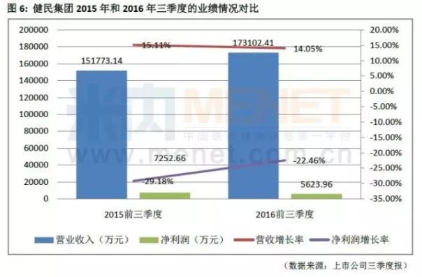 健民集团在2016年三季度报中提到,营业收入增长14.05%,主要是公司医药商业增长15.88%,医药工业增长10.72%,但与去年同期相比,营业收入增长速度没有太大变化,而净利润有下滑的趋势。