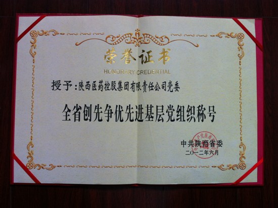 6月29日上午,在陕西省委召开的“庆祝建党91周年暨创先争优活动总结表彰大会”上,陕西医药控股集团公司党委被授予“全省创先争优先进基层党组织”荣誉称号,并受到大会表彰。